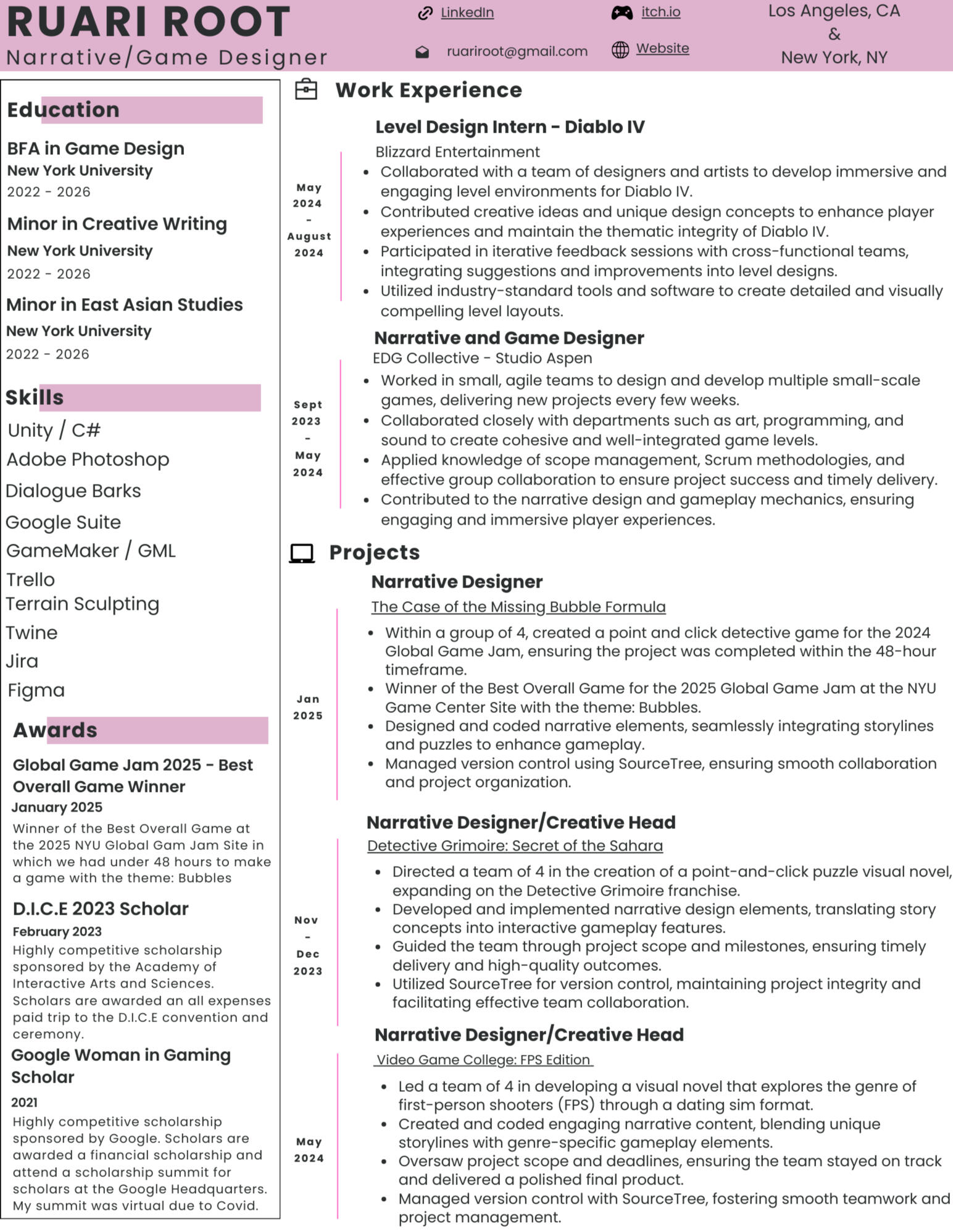 about me : Hi! I'm Ruari Root! I am currently a junior at New York University studying game design! My focus is mostly in narrative design but I also love game design! Thanks for visiting my page!(That is me and my cat Appa!)