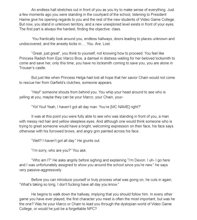 Well, now you can! Introducing Video Game College (VGC) FPS edition.In this game, the player embarks on a journey to fix Devon, the personification of the FPS genre, and fall in love!VGC: FPS Edition is a demo for a full-length game including 9 different datable characters that are the personifications of different game genres. This version focuses on Devon, the FPS genre, as players try and romance him but first, they have to fix his toxicity!This game was created in 2 weeks for NYU's Introduction to Game Development (GAMESUT 120) Final.Made with GameMaker
